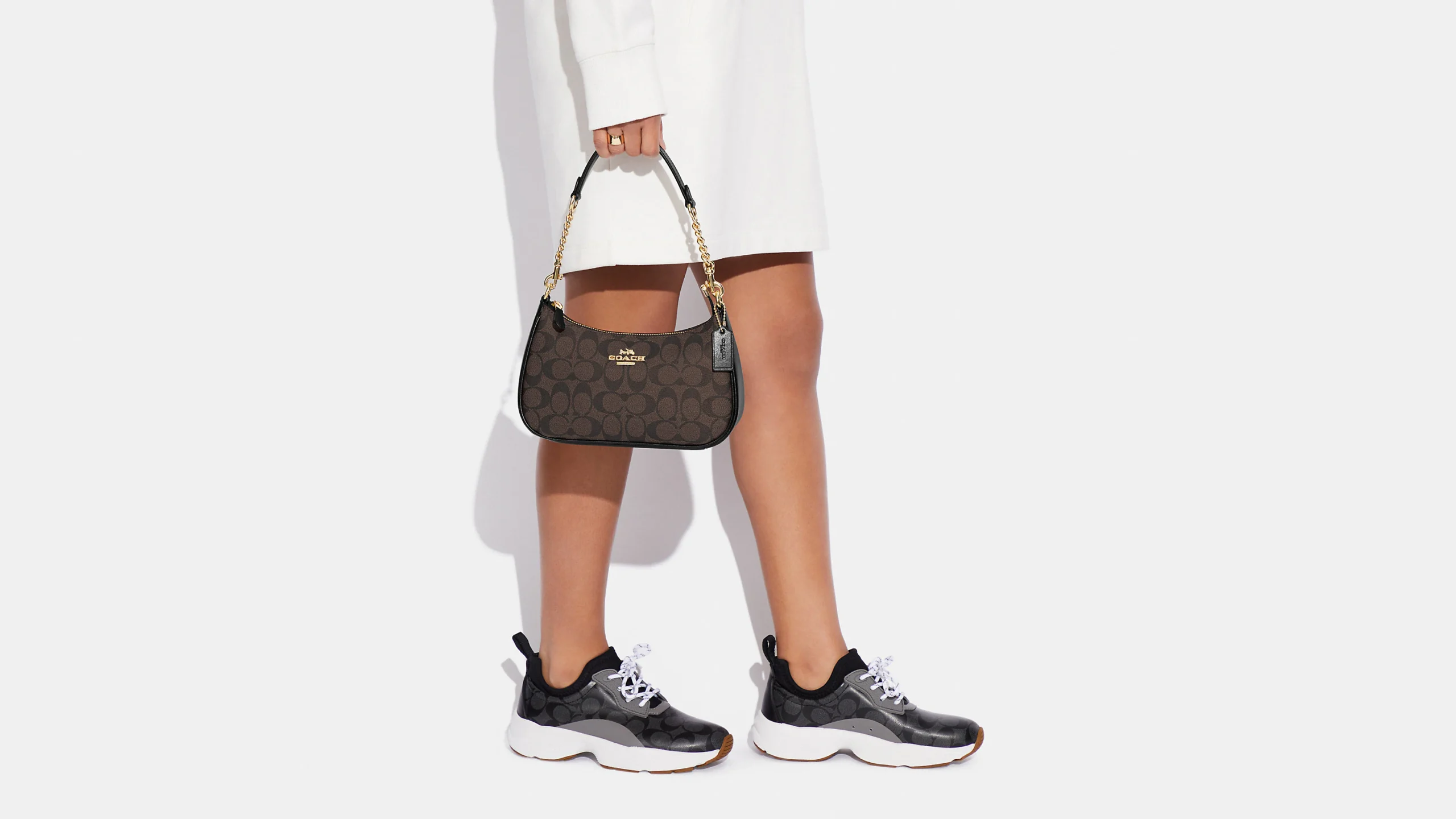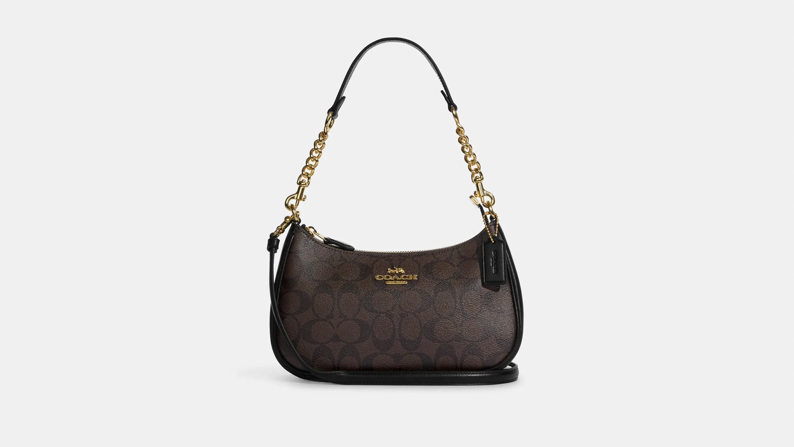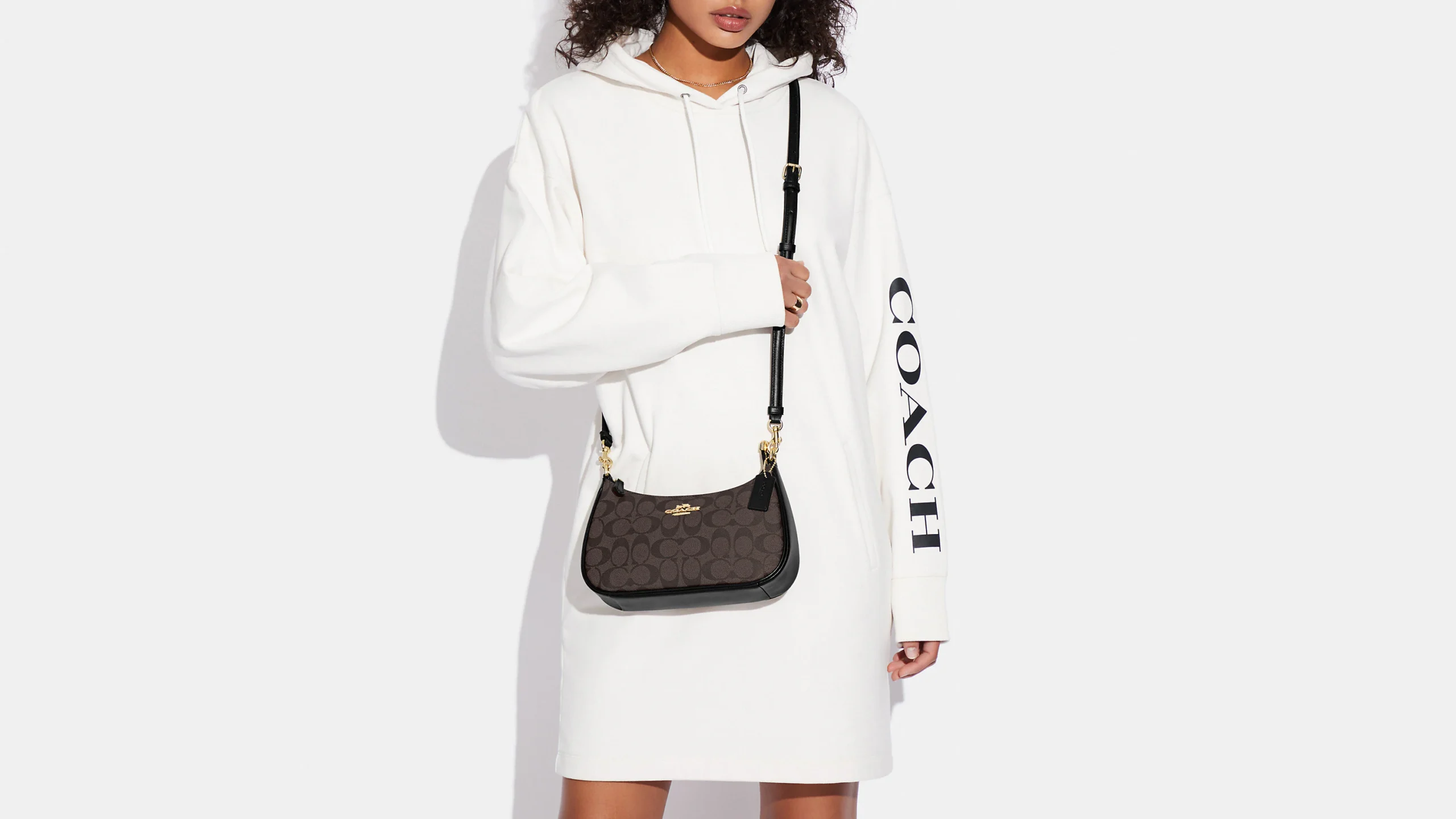 - Detachable strap with 22″ drop for shoulder or crossbody wear